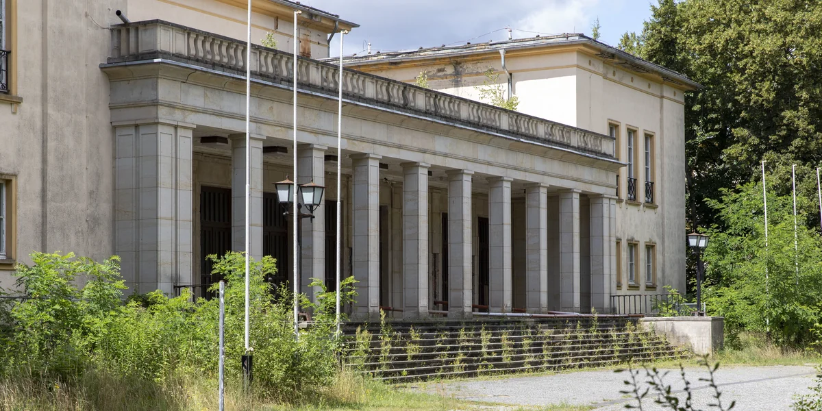 Vor den Toren ihrer Stadt lässt das Land Berlin ein architektonisches Juwel verfallen, das Areal am Bogensee, etwa 15 Kilometer nördlich vom Berliner Stadtrand. Diese kleine Exklave mit Brandenburg drumherum ist 1914 in Berliner Besitz gekommen und war im 20. Jahrhundert auf unterschiedliche Weise Schauplatz deutscher Geschichte (siehe Kasten). Dieses historische Erbe mit der Villa von Reichspropagandaminister Joseph Goebbels und gigantischen Stalinbauten der Jugendhochschule der FDJ mitten im Wald und am Ufer eines der verwunschensten Seen in Brandenburg macht seine Faszination aus. Dazu muss man kein Anhänger einer Diktatur sein. Aber es verfällt.