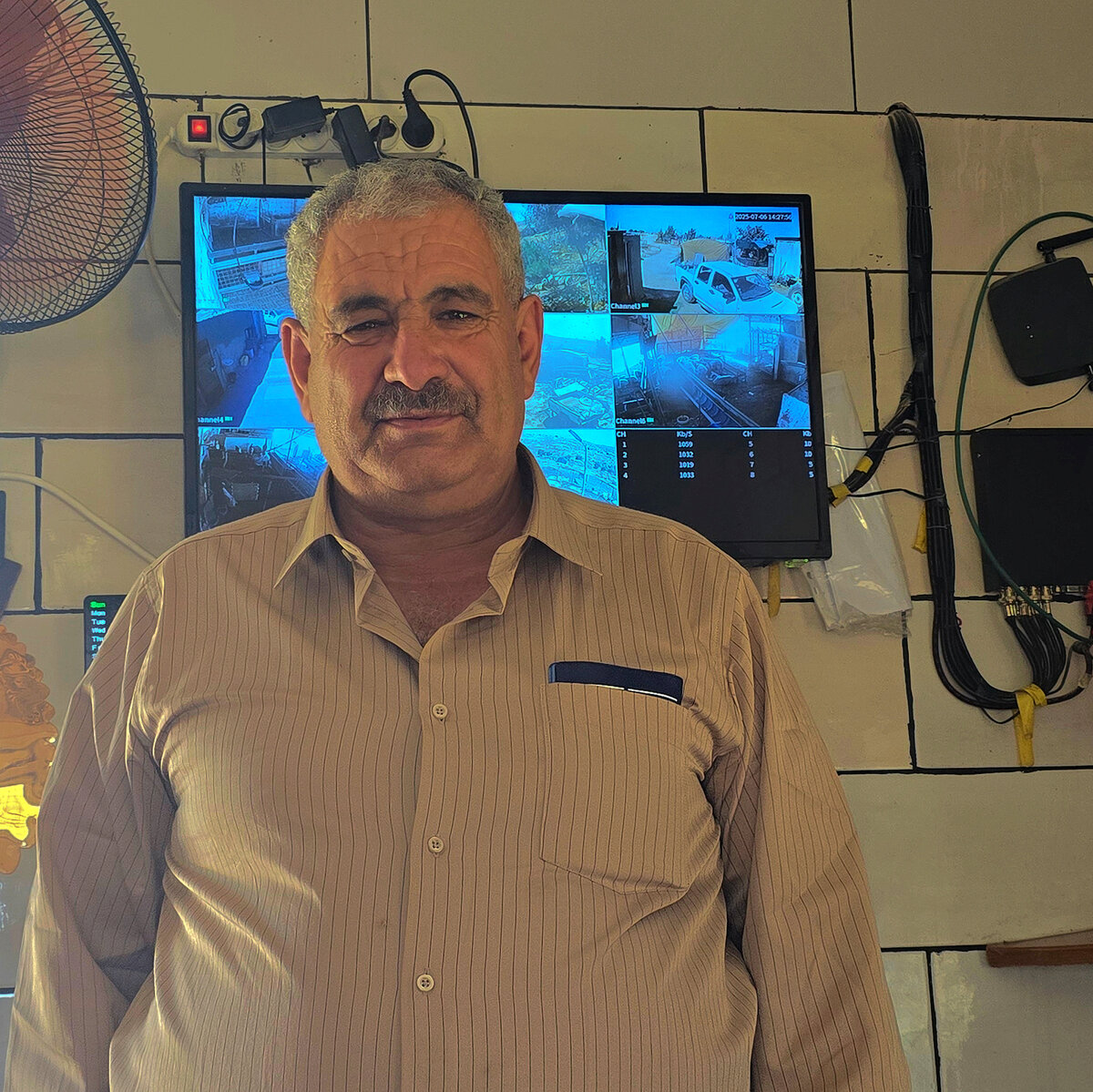 Dorfvorsteher Jihad Nawaja steht vor dem Bildschirm seiner Überwachungskameras Foto: Serena Bilanceri