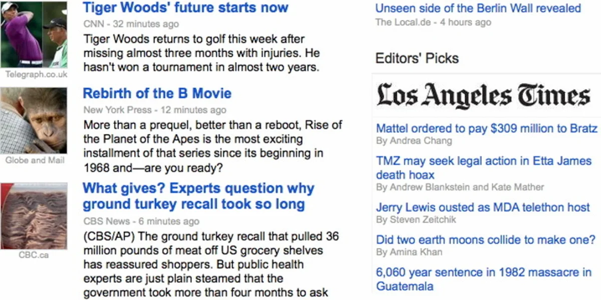 Ähnliche Features in Sachen "Der Chefredakteur empfiehlt" sind unter Namen wie "Editors' Choice" auf den meisten Zeitungswebsites schon lange präsent. Google hatte bereits im vergangenen Jahr seine "Editors' Picks" in den USA getestet – mit großem Erfolg, wie es im hauseigenen Blog heißt. Noch ist die Pickerei, die auch reine Online-Angebote wie Politico, ProPublica oder The Root listet, auf die USA beschränkt.