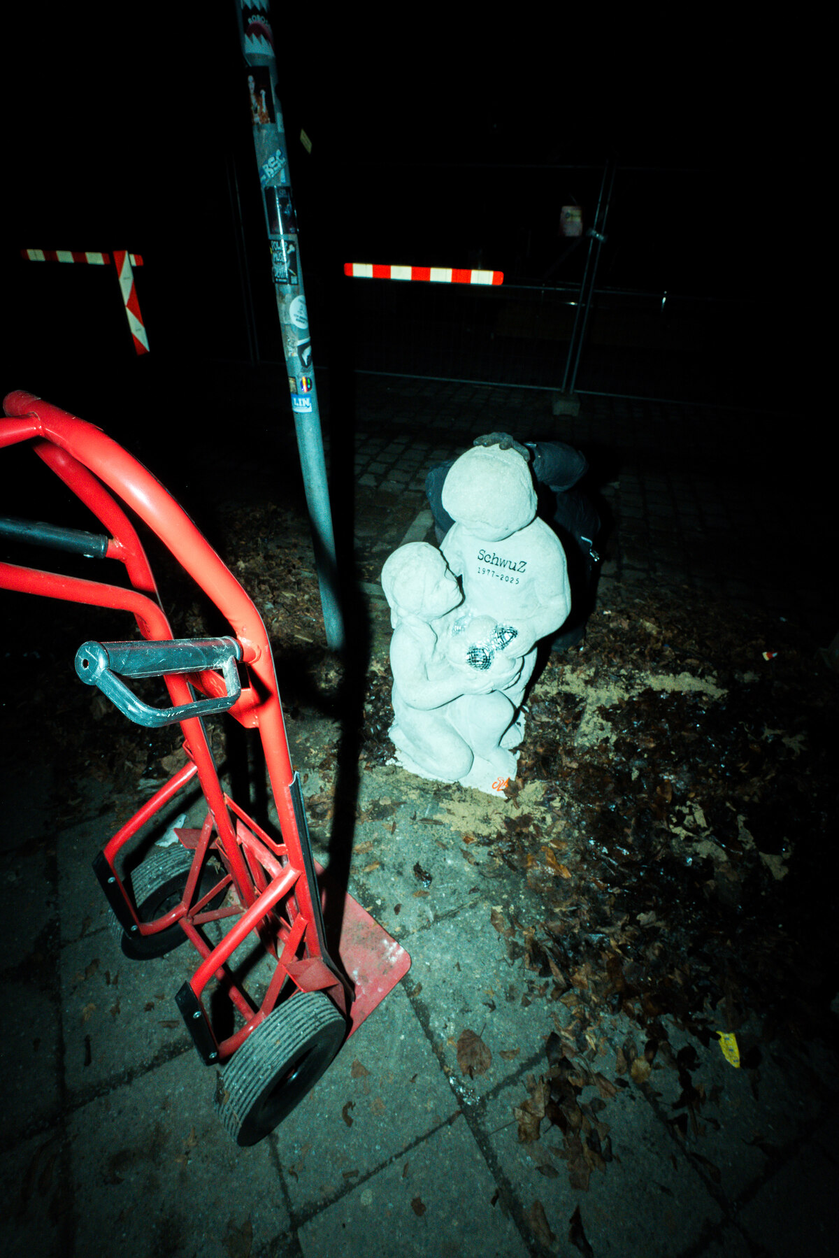 Der queere Club ist Grund für die Aktion von Schneid und seinen Freunden am Sonntagabend. Die Berliner stecken hinter dem Kollektiv „Steinzeit Alter“, das in der Rollbergstraße einen Grabstein für das Schwuz aufgestellt hat. Nach 48 Jahren meldete der Club Ende letzten Jahres Insolvenz an, am 1. November fand die Abschiedsparty statt. Nun sucht die Clubcommission nach einer neuen, kleineren Location für das Schwuz.