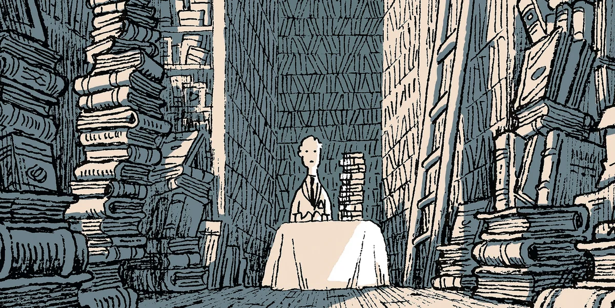 Auf Andi Watsons zittrigen Tuschezeichnungen von „Die Lesereise“ wird eine englische Kleinstadt zum kafkaesken Labyrinth.