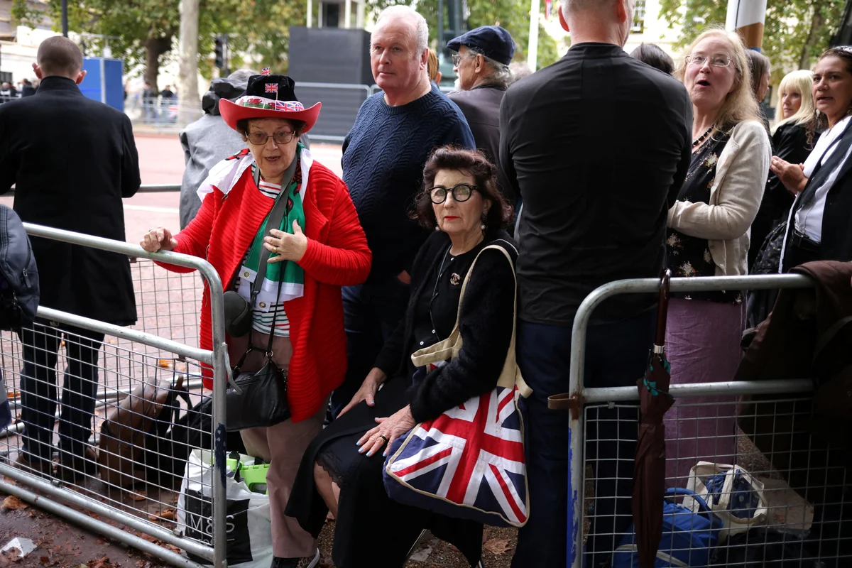 Vanessa Nathakumaran, 56, stammt aus Sri Lanka. Grace Gothard kam in Ghana auf die Welt und Delroy Morrison in Jamaika – alles ehemalige britische Kolonien. Dazu steht hier Anne Daley aus Wales. Warum sie hier seien? Nathakumaran spricht stolz von ihrem Großonkel, den König George V. (1910–1936) einst zum Ritter schlug, und von ihrer Tochter, Mitglied der Ehrengarde der Queen beim 50. Thronjubiläum im Jahr 2002. Für Anne aus der walisischen Hauptstadt Cardiff – sie trägt ein walisisches Fußballtrikot – ist es einfach Betroffenheit, die sie hierher geführt hat. „Ich konnte am Anfang nicht mit dem Weinen aufhören, nachdem die Queen gestorben war“, erzählt sie.