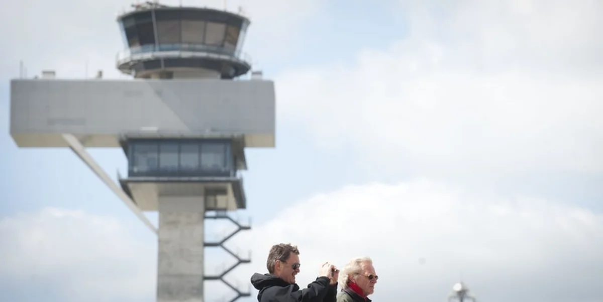 Alle paar Meter erklären riesige Fotos mit Text die Umgebung. Ein junges Pärchen muss beim Lesen eines Schilds kichern. „Das Nord-Pier ist das Low-Cost-Pier des BER. Hier steigen die Passagiere zu Fuß ein“, steht da in Flughafen-Sprech. Zwei ältere Herren blicken in die Abfertigungshalle, Fotoapparate baumeln ihnen um den Hals. Drinnen macht sich gerade ein Bauarbeiter an den Bodenplatten zu schaffen. „Der Brandschutz war nur eine Ausrede für die Verschiebung – es kommt doch ganz vieles zusammen“, glaubt einer der Männer. „Es ist schwachsinnig, Tegel und Schönefeld zu schließen. So dumm kann nur Berlin sein“, empört sich der andere. Er stammt aus Lichtenrade.