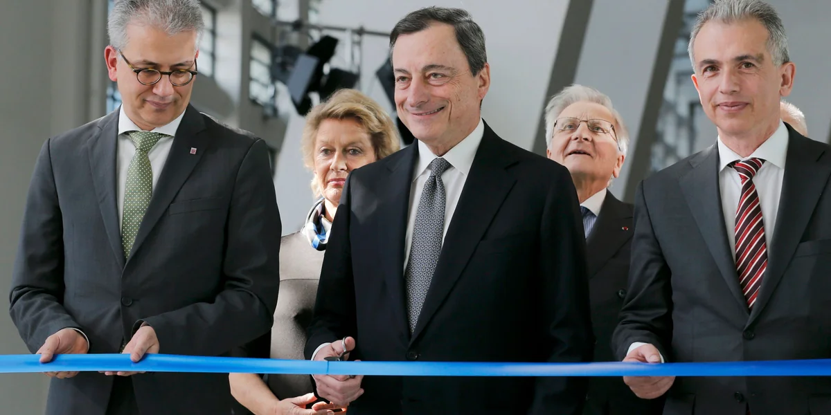 Bei der Einweihung des EZB-Gebäudes in Frankfurt stehen die Grünen in der ersten Reihe. Bei den Protesten dagegen nicht. Warum eigentlich?