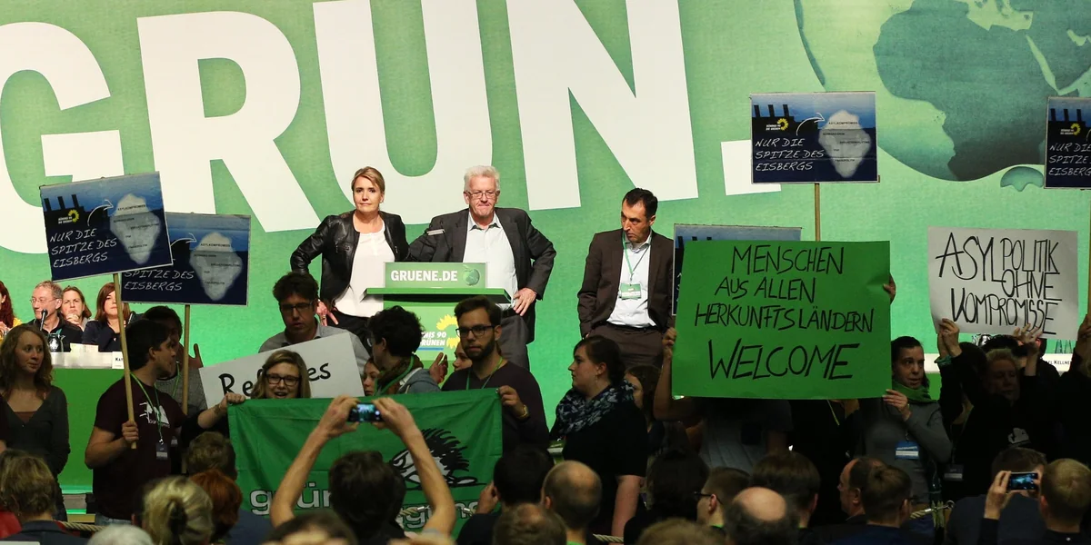 Als Nachwuchs-Grüne während der Rede von Kretschmann mit Protestplakaten aufmarschieren, stellt sich Parteichefin Simone Peter sogar symbolträchtig hinter ihren Gegenspieler. Dabei fand sie sein Ja zum Asylkompromiss der Großen Koalition vor zwei Monaten eigentlich grundfalsch. Es ist ein fast kitschig-schönes Bild: Die Grünen, die nach dem Eklat um Kretschmann völlig außer sich wirkten, stehen wieder zusammen.