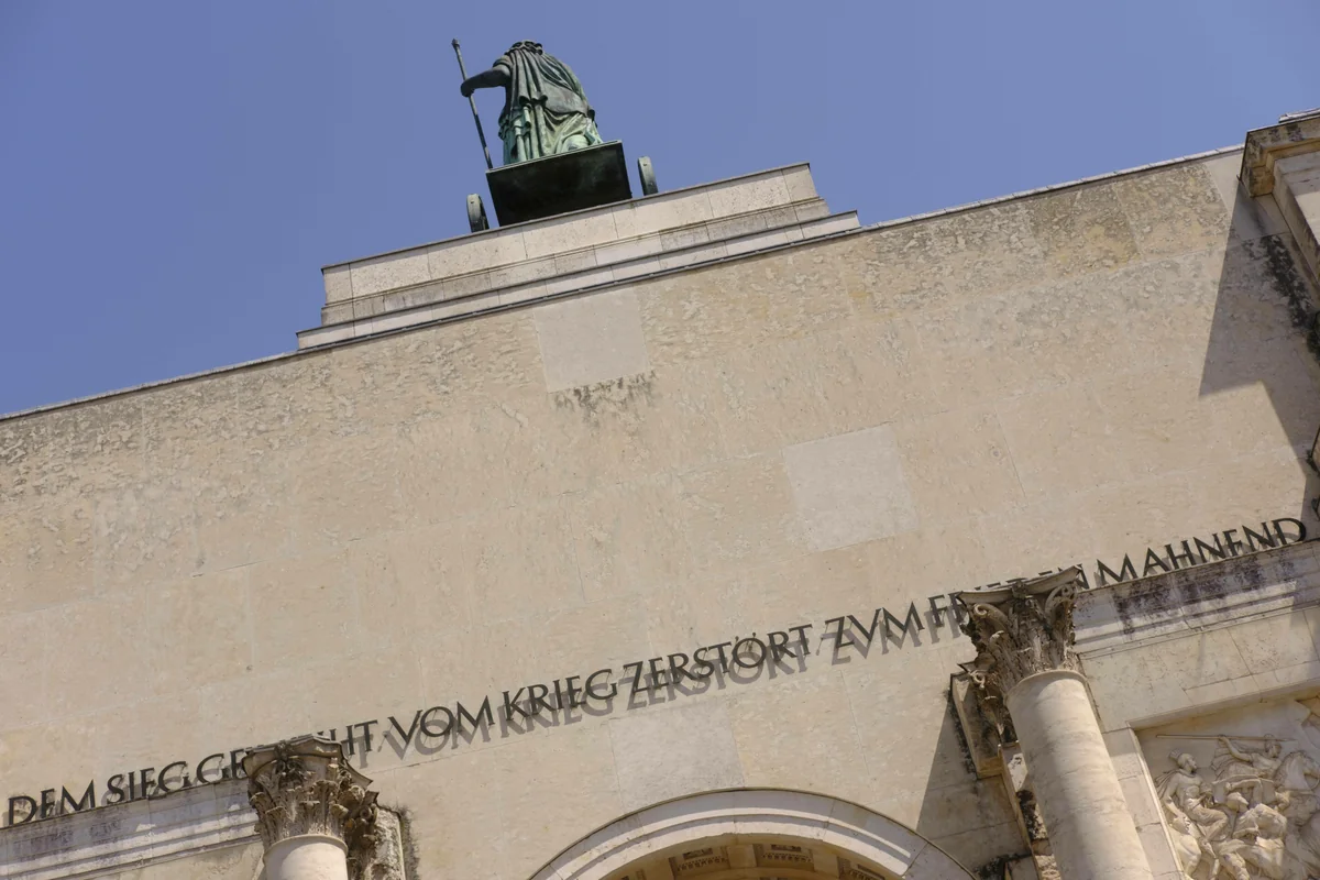 Unter dem bayerischen König Ludwig I. war das Tor ab 1843 nach antikem Vorbild errichtet worden und sollte an die Siege in den Kriegen gegen Napoleon erinnern. Im Zweiten Weltkrieg ist es zerstört und danach so wiedererrichtet worden, dass alle die Spuren der Zerstörung sehen mögen. Ob sich die Guerilla-Werber wohl damit beschäftigt haben?