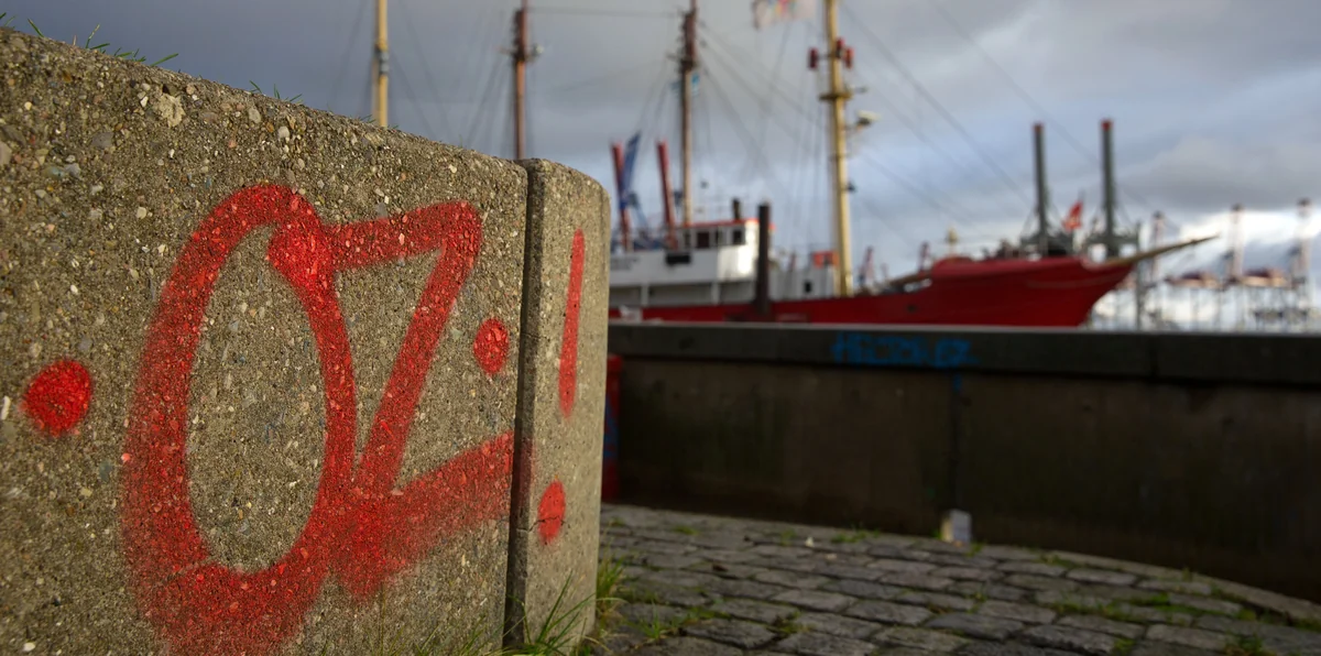 Als wollte er eine Spur legen, verewigte sich Walter Josef Fischer, so hieß er, 64, mit zwei Buchstaben und einem Punkt. „OZ.“, Kringel und Smileys sprayte er quer durch die Bezirke an der Elbe und weiter. Auf Mauern, Säulen, Steine, Laternenpfähle, auf Mülleimer, Stromkästen, Blumenkästen, mindestens 120.000-mal – „OZ.“ „OZ.“ „OZ.“. Wer es einmal sieht, sieht es ständig. In der Sternschanze, wo die Fassaden plakatiert sind. Draußen an den Elbbrücken, wo das Schilf wächst und die Möwen laut schreien.