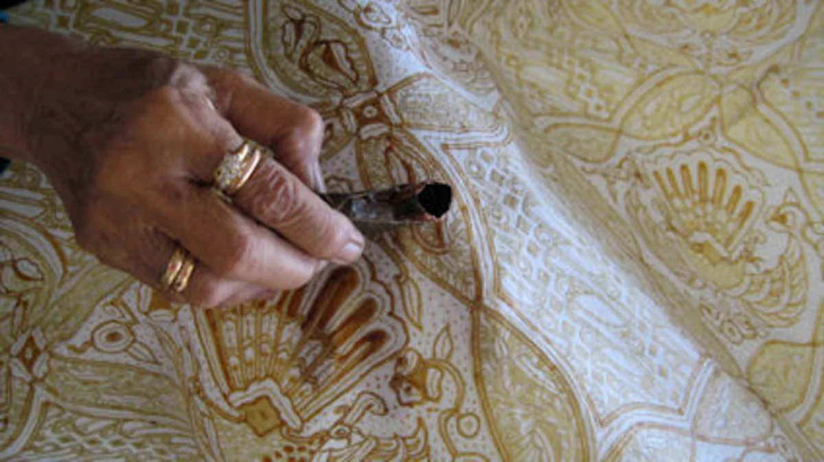 Batik, das Wort wird aus dem Javanischen "ambatik" hergeleitet, "amba" heißt schreiben, "titik" steht für Punkt. Die Kunst des "Punkteschreibens" ist eine Geduldsprobe. Schicht um Schicht wird das Wachs aufgetragen, dann wird der Stoff gefärbt, getrocknet, das Wachs wieder abgeschmolzen. Danach erneut eine Schicht Wachs, jeder Punkt, jeder noch so kleine Strich von Hand gezeichnet. Um Perfektion zu erlangen, musste man viel Zeit haben, so wie die Damen der Königshöfe in Zentraljava.