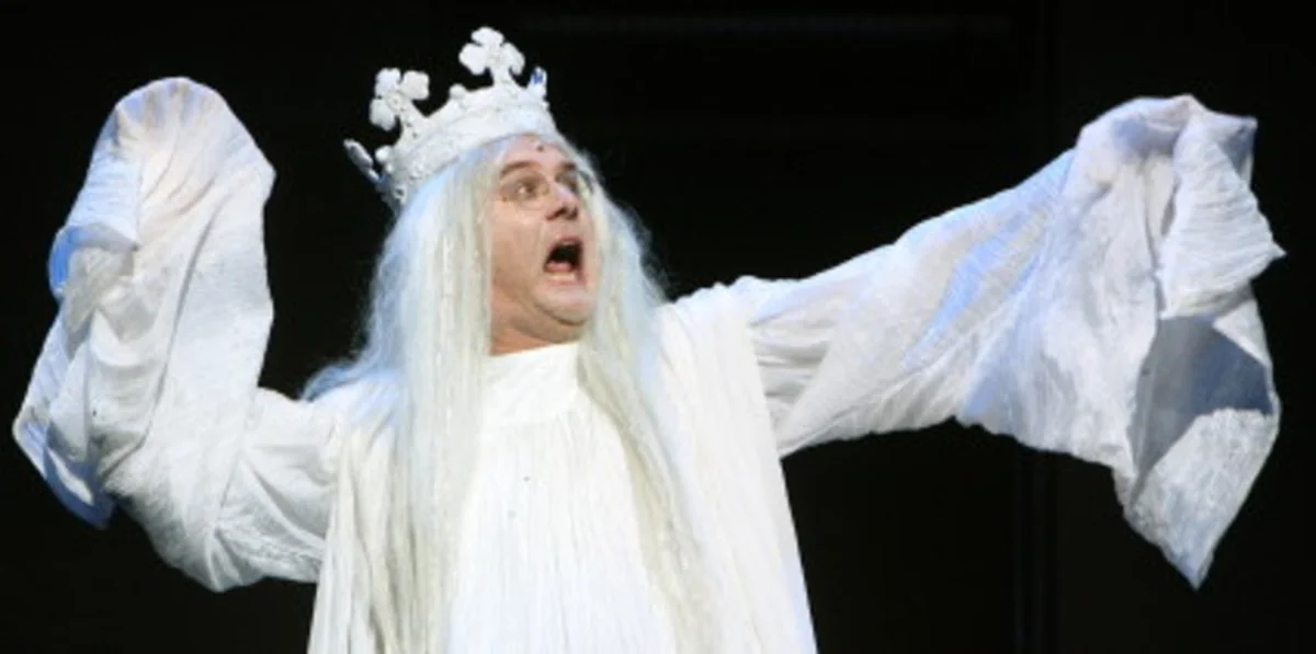 Harald Schmidt hüpft im "Prinz von Dänemark"-Musical in Stuttgart in Polonius-Strumpfhosen über die Bühne.