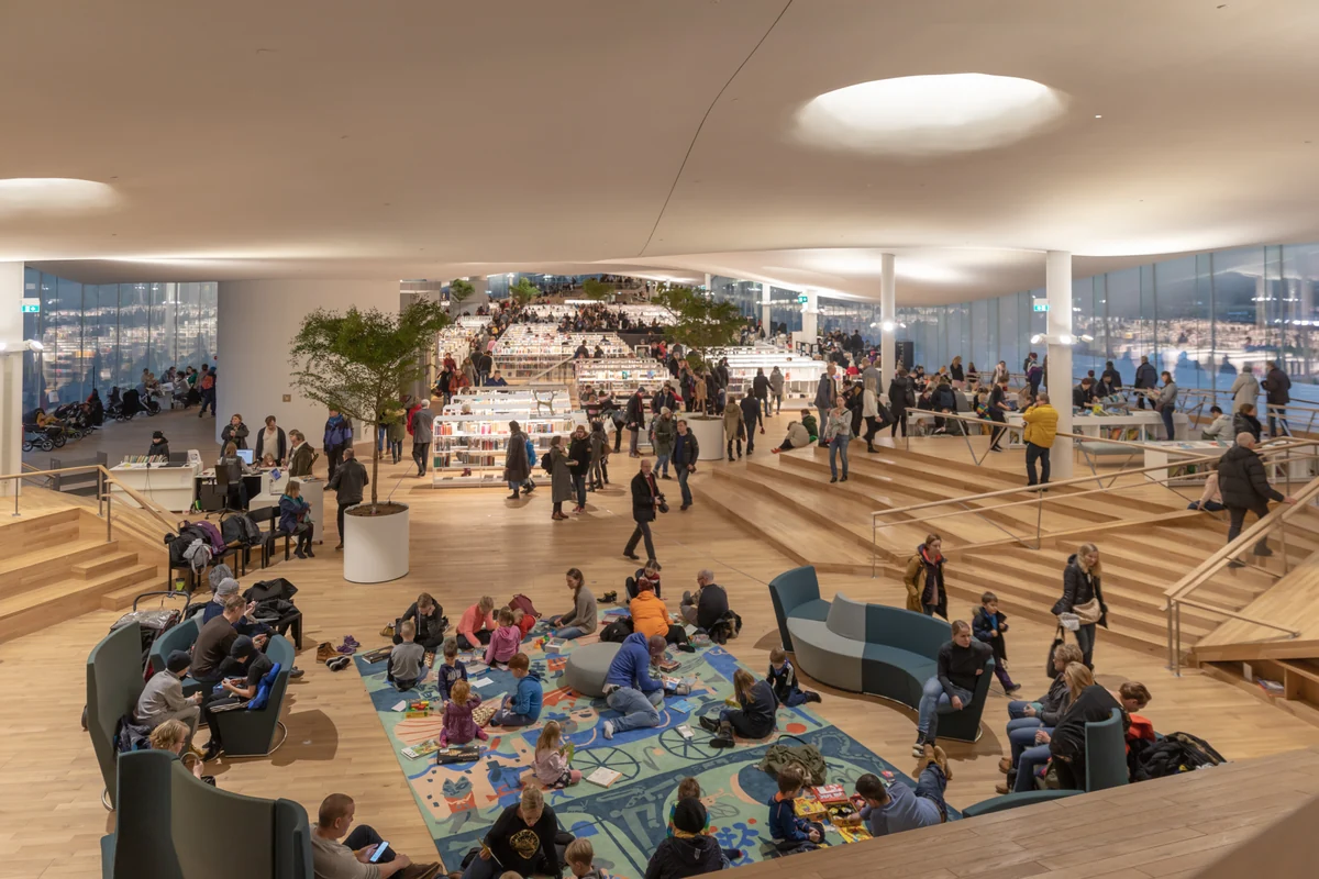So nennen die Finnen die Bibliothek Oodi in ihrer Hauptstadt Helsinki. Das ist ein Ort, in dem man nicht nur Bücher ausleihen, sondern kochen, Videos drehen, Dinge reparieren, Musik machen und sich ohne jeden Anlass treffen kann. Am Eingang weist ein Schild auf die Funktion: „Jeder hat das Recht, in der Bibliothek zu sein. Herumhängen ist erlaubt, ja sogar erwünscht. Rassismus und Diskriminierung haben in dieser Bibliothek keinen Platz. Oodi ist unser gemeinsames Wohnzimmer.“