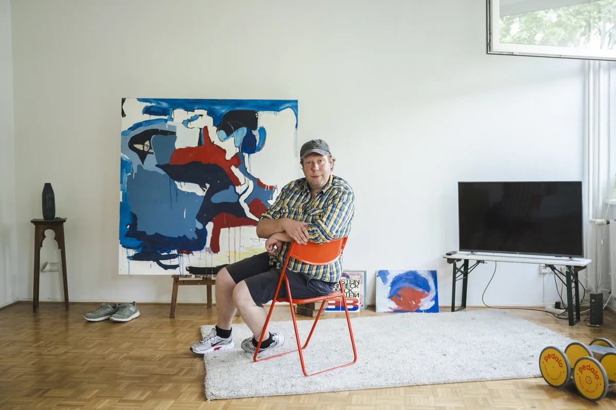 Drinnen: Sven Dittrich öffnet die Tür einer 180-Quadratmeter-Wohnung mit zwei Ebenen. Unten leben er und sein Mann, oben sieben weitere Menschen: „Für die WG gecastet.“ Im großen Flur Garderobenständer, Schuhe, „Gemeinschaftstisch“, in der Küche drei Kühlschränke. Im Wohnzimmer ein Holztisch, Teppich, Fernseher: „Ein Sofa fehlt noch.“ An den Wänden Aquarelle seines Mannes. Krempel sucht man vergeblich – nach einer Renovierung haben sie radikal reduziert.