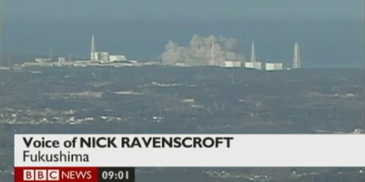Das Gebäude des Reaktorblocks 1 im Akw Fukushima Daiishi stürzt ein. Bild: screenshot bbc news