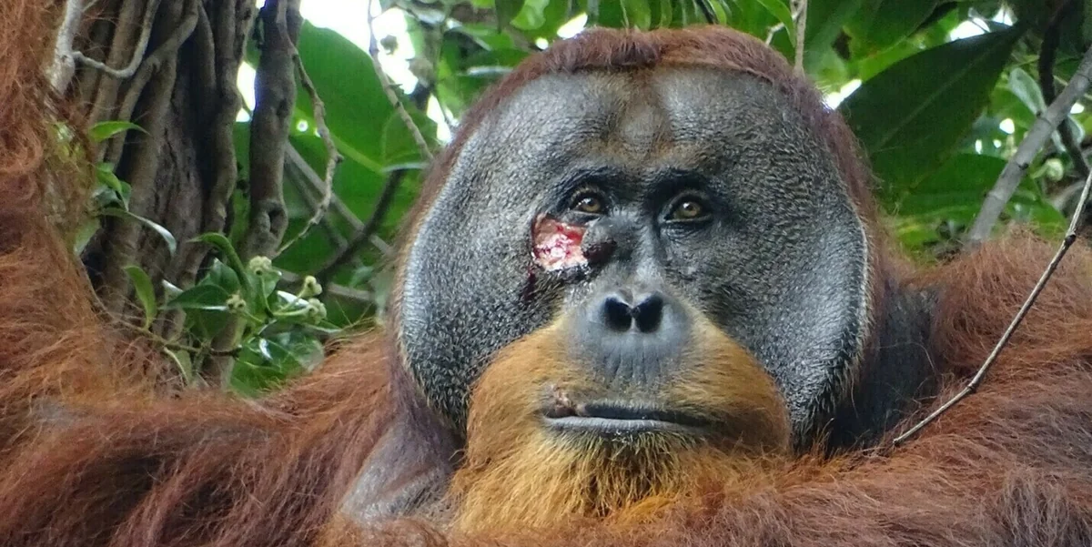 Ein Orang-Utan heilt mit einer Pflanze seine offene Wunde. Damit gibt es eine weitere Gemeinsamkeit zwischen den Menschen und den Menschenaffen.