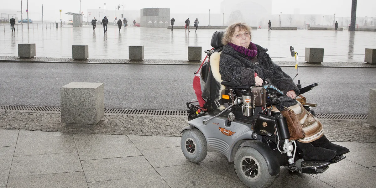 Ursula Lehmann sitzt im Rollstuhl. Die 73-Jährige hat graue Haare, ein paar Strähnen leuchten in hellem Violett. Sie trägt eine schwarze Wolljacke, ihre Knie hält sie mit einer dicken Decke warm. „Mobilität“, sagt die energische Frau und steuert ihren elektronischen Wagen gekonnt durch den Berliner Hauptbahnhof, „ist mein wichtigstes Thema.“