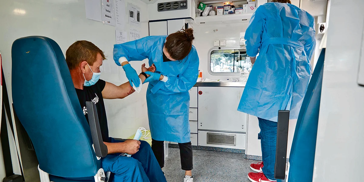 Kelm: Wir haben einen Wagen zur mobilen Praxis umgebaut. Dort bieten wir eine hausärztliche Sprechstunde an. Jeder kann kommen. Wir haben die wesentlichen Medikamente an Bord. Wir haben auch etwas zu trinken, eine Unterhose oder ein paar Strümpfe. Manche Menschen sind so verelendet, denen mag man gar nicht die alten Klamotten wieder anziehen. Seit letztem Jahr haben wir eine zusätzliche Sprechstunde für chronisch Kranke in einer Tagesstätte. Und wir planen jetzt ab August, September eine psychiatrische Sprechstunde, eben für dieses Klientel, das total unterversorgt ist.
