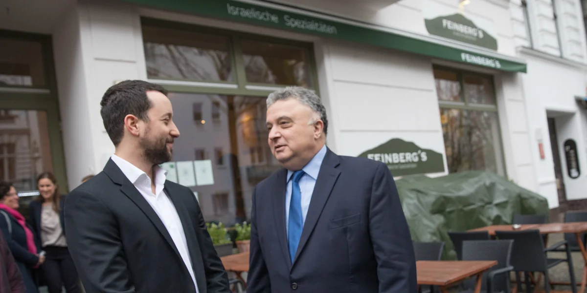 Bundesjustizminister Heiko Maas verurteilte den Vorfall auf Twitter. „Den Brandstiftern dürfen wir nie das Feld überlassen. Denn erst kommen die Worte, dann die Taten“, schrieb der SPD-Politiker. „Diese abscheuliche Attacke macht erneut deutlich, dass Antisemitismus in der Mitte der Gesellschaft angekommen ist und mittlerweile offen und unverblümt artikuliert wird“, sagte Josef Schuster, Präsident des Zentralrats der Juden, in der Jüdischen Allgemeinen. Der israelische Botschafter Jeremy Issacharoff hatte das Restaurant Feinbergs bereits am Donnerstagnachmittag besucht.