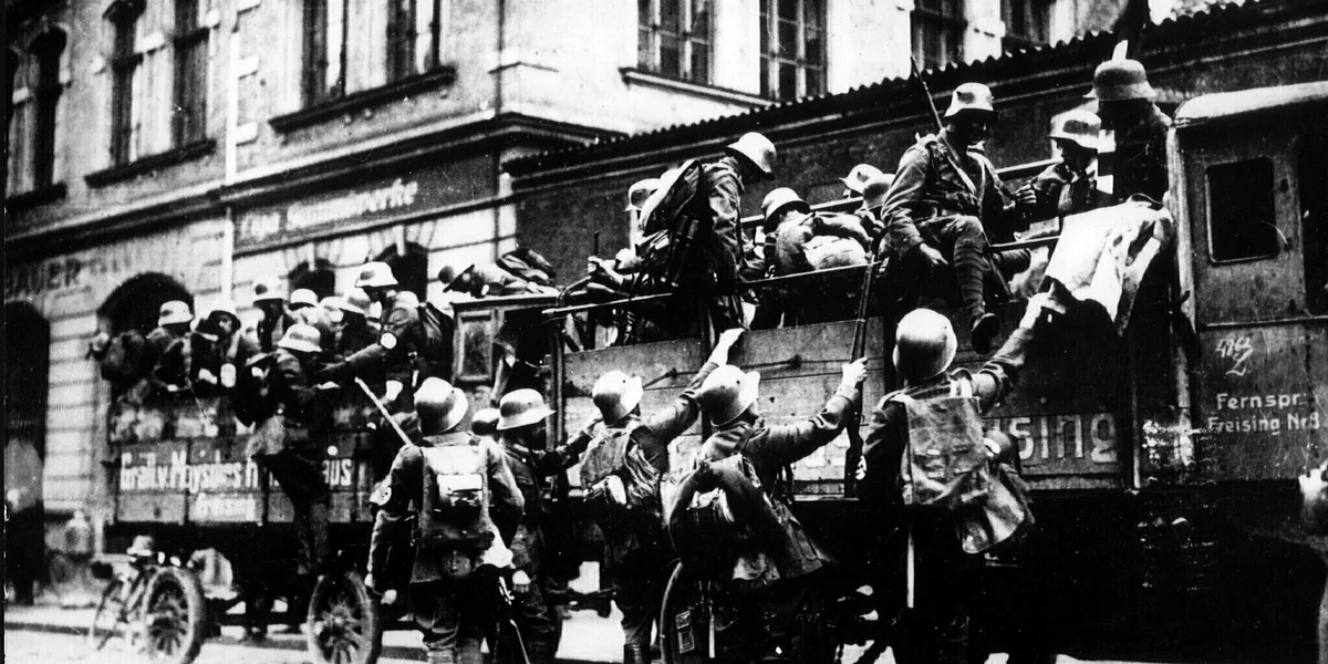Nach der brutalen Niederschlagung der Münchner Räterepublik im Mai 1919 wurden diejenigen, die unter den Linken an die 2.000 Menschen massakriert hatten, von der Justiz nicht zur Verantwortung gezogen. Die Freikorps lösten sich nur zum Schein auf. Um der im Versailler Friedensvertrag festgeschriebenen Demilitarisierung zu entgehen, deklarierten sie sich um zu vaterländischen Vereinen, gaben zur Tarnung wenige Gewehre ab und schlossen sich unter Duldung von Polizei mit völkischen Ideologen zu einem Staat im Staate zusammen.