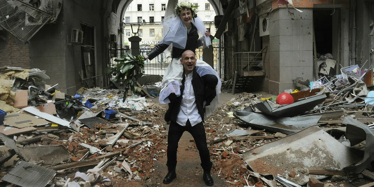 In Charkiw fand kürzlich unter russischem Beschuss eine ungewöhnliche Hochzeit statt. Anton Sokolow (38) arbeitete vor dem Krieg als Zahnarzt im Charkiwer Gebiet, das seit Kriegsbeginn schweren Angriffen ausgesetzt ist. Seine Frau (33), Anastasia Gratschewa, hat bis zum Ausbruch des Krieges als Krankenschwester im Institut für medizinische Radiologie gearbeitet. Kennengelernt haben sie sich am 28. März 2020, als Anastasia ihren Sohn aus erster Ehe zum Zahnarzt begleitete. Es war Liebe auf den ersten Blick. Auf den Tag genau, zwei Jahre später, machte Anton Anastasia einen Heiratsantrag. Die Hochzeit fand am 2. April statt – nebst einem Foto-Shooting im Hof des Palastes der Arbeit, den russische Truppen kurz zuvor mit einem Kalibr-Marschflugkörper zerstört hatten. Auch während der Hochzeit war Charkiw unter Beschuss. Getraut wurden die beiden in der U-Bahn-Station Universität, dem größten Luftschutzbunker im Zentrum der Stadt.