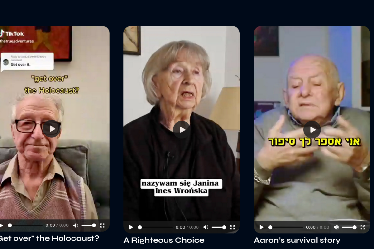 Manche der Videos sind mit Gidon Lev. Der 90-jährige Holocaust-Überlebende ist mit seinem Tiktok-Account „TheTrueAdventure“ bekannt geworden. In einem Video ist er zu Besuch in Berlin und erzählt, dass er die Stadt schön findet. In anderen Videos sieht man ihn bei Kongressen, wo er Kindern und Jugendlichen seine Geschichte erzählt.