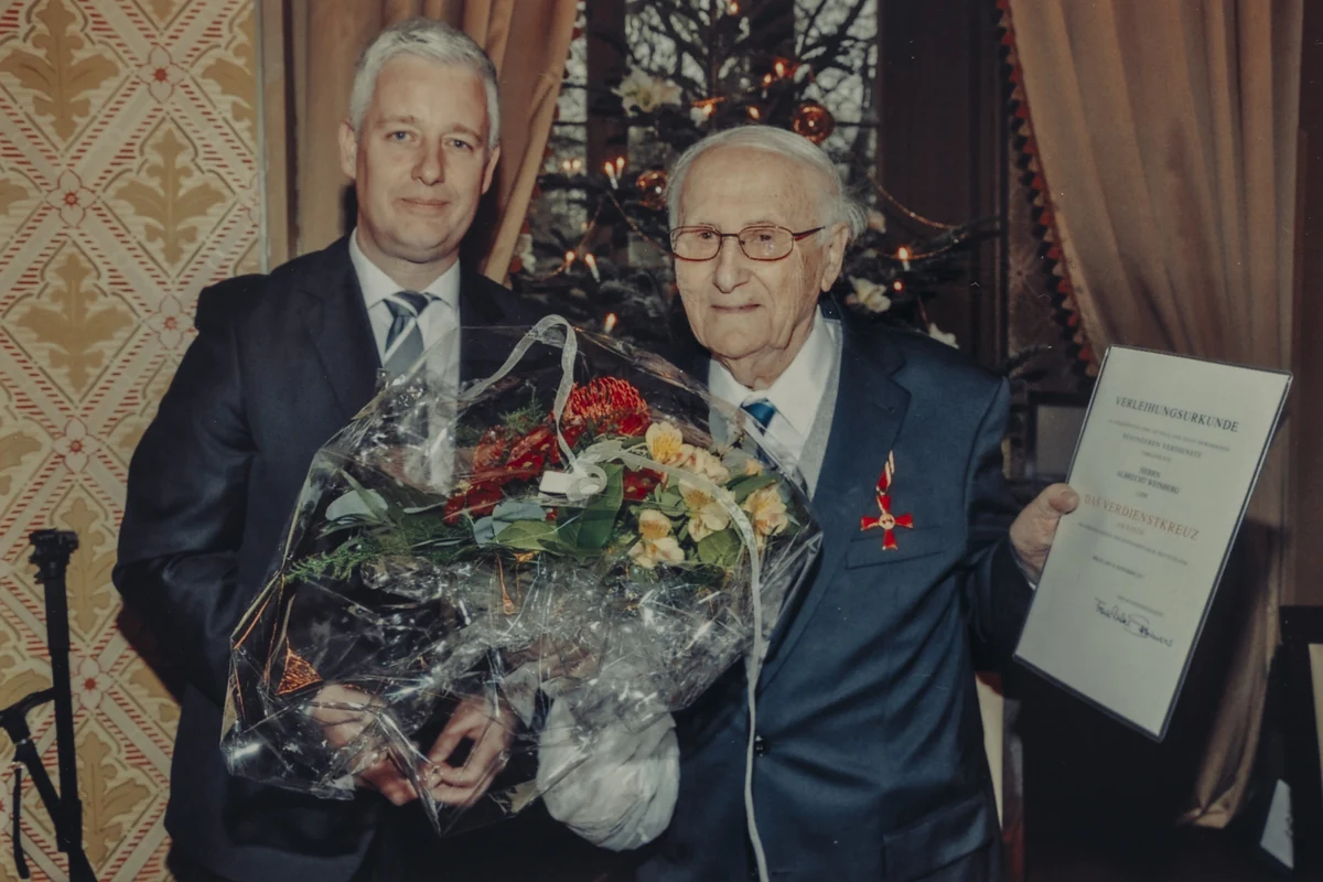 Albrecht Weinberg: Mir geht es sehr gut. Wer kann schon auf so einer schönen Terrasse wie ich sitzen, mit diesem Ausblick ins Grüne? Die Familie von Gerda Dänekas hat mich quasi adoptiert, ich habe ein gutes Leben hier. Ich bin jetzt über 100 Jahre alt. Ich genieße jeden Tag. Ich weiß genau, dass ich mit einem Fuß im Grab stehe
