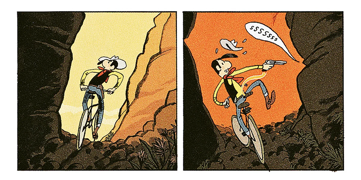 Ob Lucky Luke dauerhaft aufs Rad umsteigen wird oder es doch noch zum Happy End mit Jolly Jumper kommt, soll hier nicht verraten werden.