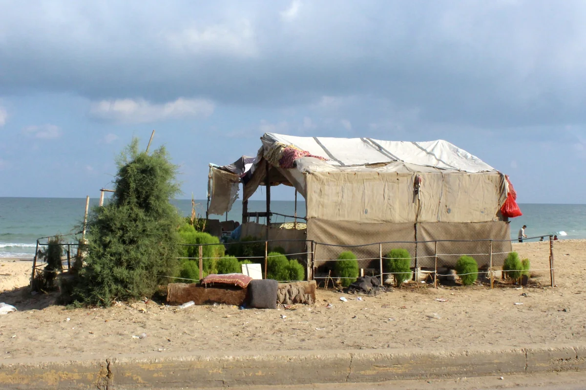E in Mensch kann seine Liebe zum Leben überallhin mitnehmen – selbst unter den schwierigsten Bedingungen. Trotz der Vertreibung durch den Krieg bleibt der Wille, an der Erde festzuhalten und sie zu bepflanzen – auch wenn es nur im Umfeld eines einfachen Zelts am Meeresufer ist. Egal, wie die Umstände sind, scheint es den Drang zu geben, mit der Natur in Verbindung zu bleiben. Die Pflanzen rund um das Zelt sind nicht bloß Gewächs, sondern ein Beweis dafür, dass der Mensch, der hier lebt, in sich eine Liebe zum Leben und den Wunsch zum Weitermachen trägt – trotz der Vertreibung und des Verlusts seines einstigen Hauses.
