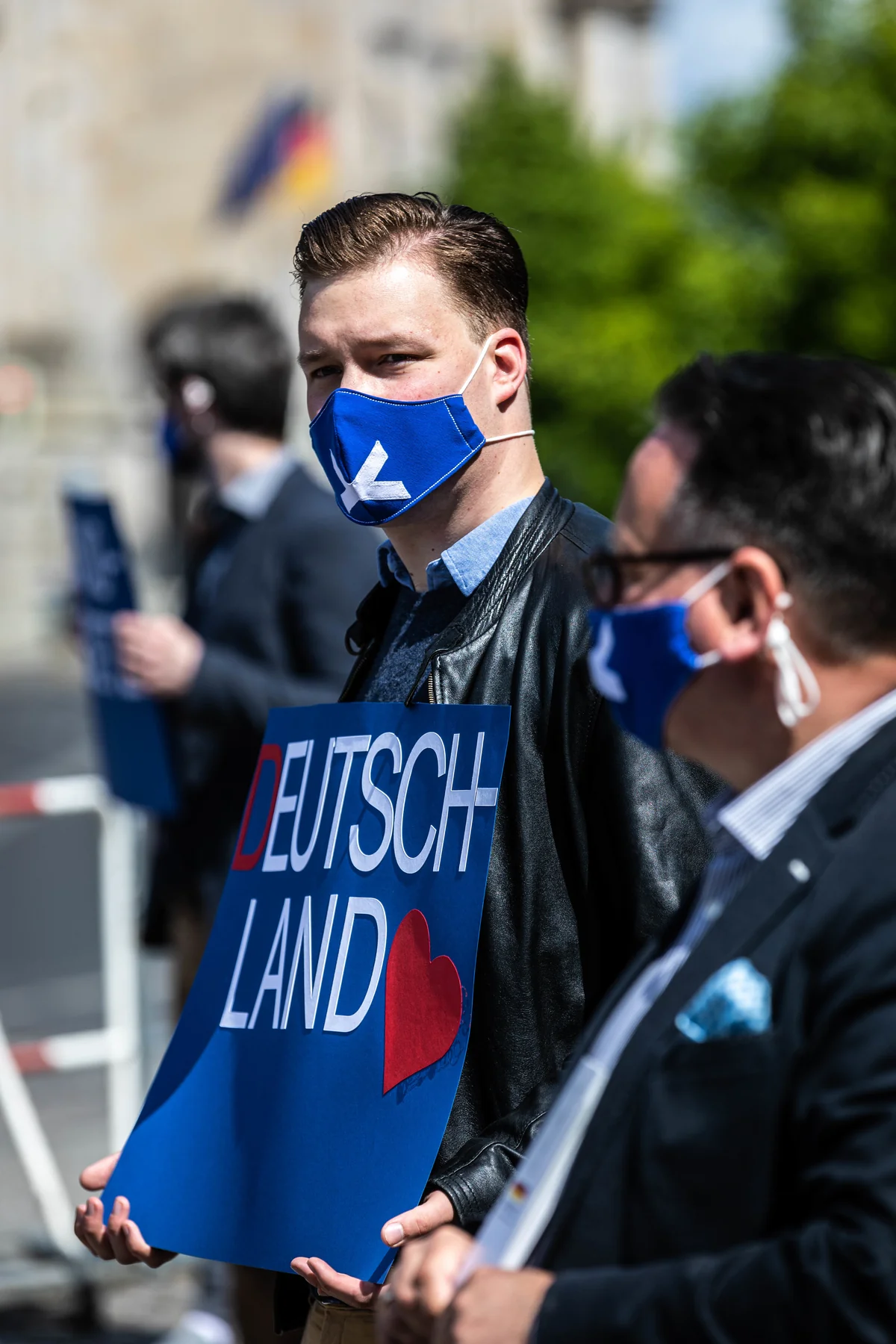 Auf dem Weg zum Rosa-Luxemburg-Platz herrscht viel Unmut. Die Erzählung von der „aggressiven Antifa“ und „kriegsähnlichen Zuständen“ wird weitergetragen. An einer Kreuzung verteilen zwei junge Frauen in schwarzen Jacken und mit Mundschutz rote Flugblätter. „Gates noch?“, steht darauf über sehr viel Text. Die Reaktionen fallen verschieden, aber entschieden aus. Eine blonde Frau bringt den Zettel hämisch lachend und sagt, sie hätten sich die Druckertinte sparen können. Eine ältere Frau fragt, ob sie noch ein paar Zettel haben könne, „für die, die sich heute nicht hertrauen“. Ein Mann blickt auf den Zettel und hebt seinen rechten Arm reflexartig zu einem Hitlergruß in die Luft. Als die Frauen daraufhin laut werden, ruft er: „Ihr seid die Nazis!“