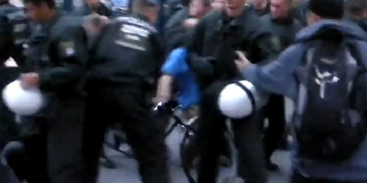 BERLIN taz | Ein Mann im blauen T-Shirt spricht mit einem Polizisten, schreibt etwas auf einen Zettel und schiebt mit seinem Fahrrad davon. Weit kommt er nicht. Ein anderer Polizist reißt den Mann an seinem Hemd brutal zurück. Ein dritter Polizist haut ihm mit voller Wucht die Faust ins Gesicht. Drei-, viermal - dann verwackelt das Kamerabild.