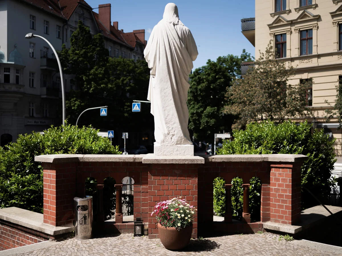 Ich habe immer viel über Gott gesprochen, über das Religiöse. Aber aufgrund der Erfahrungen in den Praktika, im Vikariat, habe ich einfach immer mehr auf Jesus Christus geguckt. Weil ich menschliche Erfahrungen gemacht habe, die sich in den neutestamentlichen Geschichten verbunden haben. Als Konfirmanden mich mal danach fragten, musste ich zugeben, dass ich mit Jesus Christus lange nichts anfangen konnte. Und doch ist es mir extrem wichtig geworden. Ich bin da total angekommen. Ich bin sehr froh, dass wir hier diesen netten Jesus vor der Kirche stehen haben, der immer so in den Kiez grüßt. (lacht) Das ist für mich ein wohltuendes Bild, weil die Barrieren oft so groß sind, in Gottesdienste zu gehen oder sich in der Kirche zurechtzufinden.