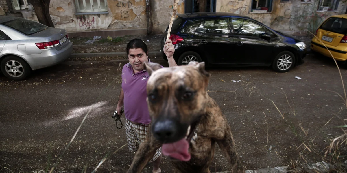 Die gelbe Fassade der Häuser ist wie durch einen Schmutzschleier verhangen, überall blättert der Putz von den Wänden. Dass die Balkone noch an Ort und Stelle sind, grenzt an ein Wunder. Viele Fensterscheiben in den Treppenaufgängen sind zerschlagen, die Wände mit Graffiti besprüht. Vom Rest der Stadt ist das Areal städtebaulich abgegrenzt, ringsherum erheben sich mächtige Bauten: der oberste Gerichtshof, die Hauptwache der Polizei, ein Krankenhaus und das Stadion von Panathinaikos Athen, dem beliebtesten Fußballverein des Landes.