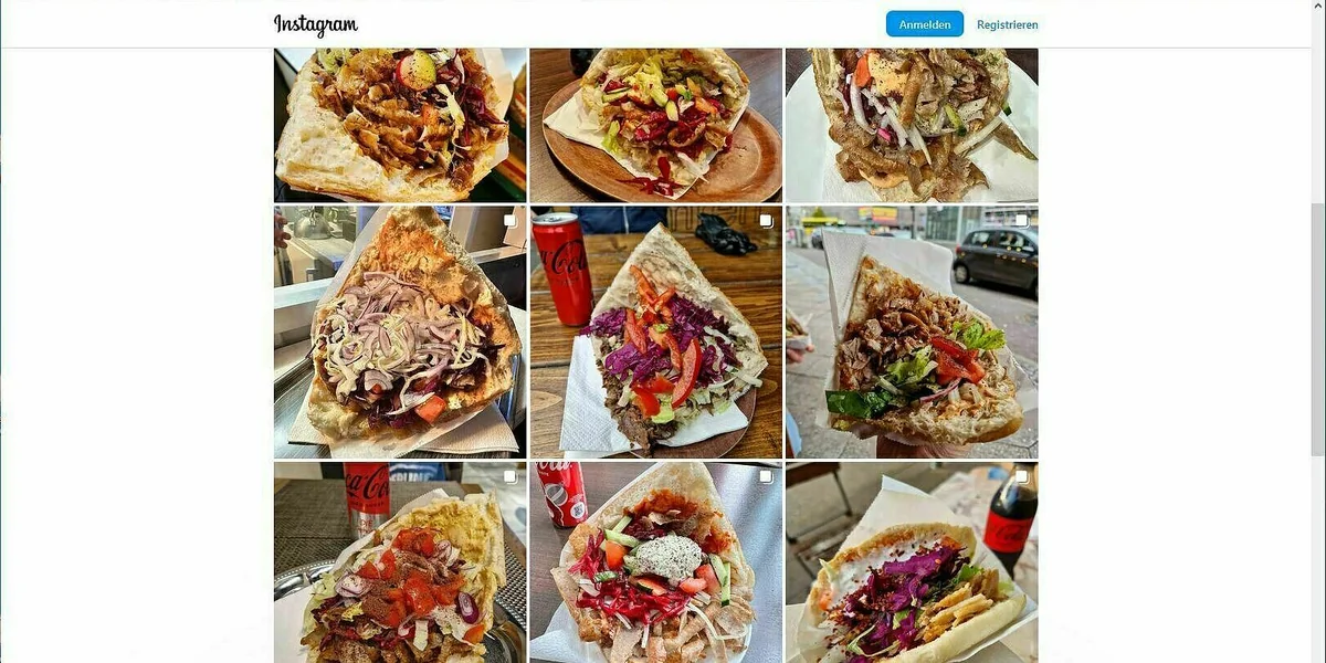 Wer keine Zeit für Videos hat, findet auch beim Instagram-Account „doenerguidesberlin“ geballte Dönerkompetenz mit sinnlichen Dönerporträts. In kompakten Captions bewerten Don Fladenbrot und Co Dönerbuden mit einem ausgetüftelten System, bei dem nicht Kochlöffel, sondern Döneremojis vergeben werden.
