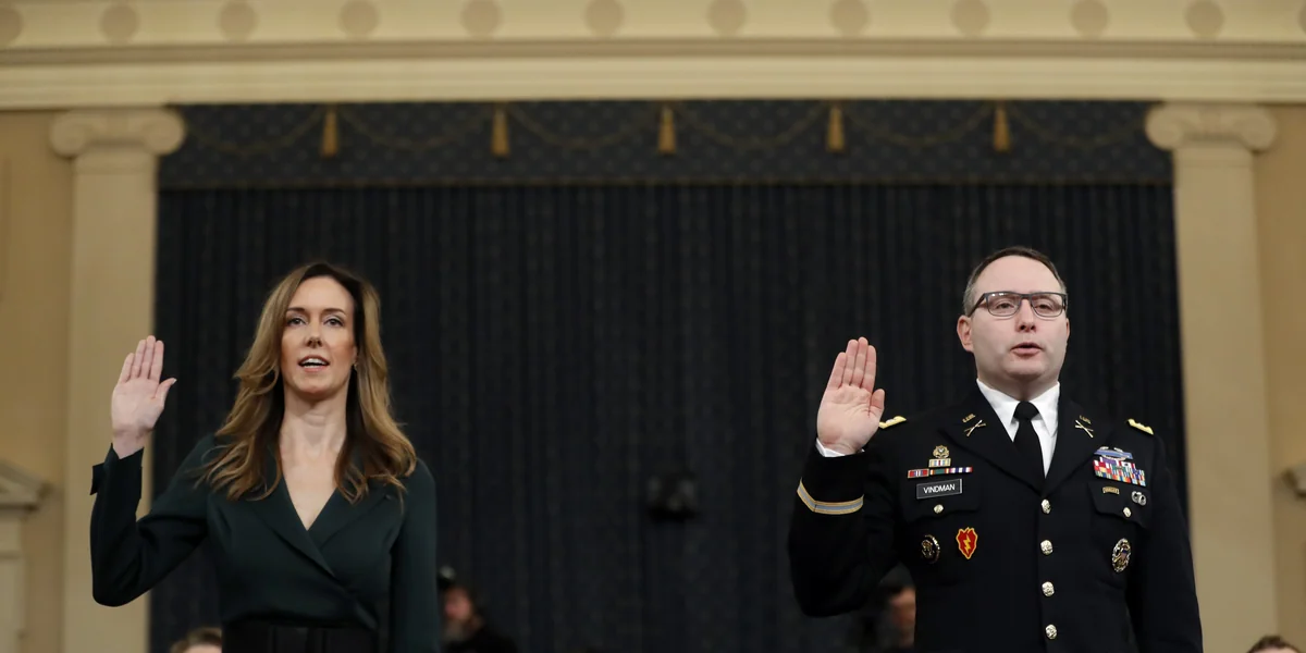 „Was ich gehört habe, war unangemessen“, sagte Vindman über das Telefonat. „Aus Pflichtgefühl heraus“ habe er seine Bedenken darüber weitergetragen, sagte der hoch dekorierte Armeeoffizier, der als Säugling aus der Ukraine in die USA gekommen war.