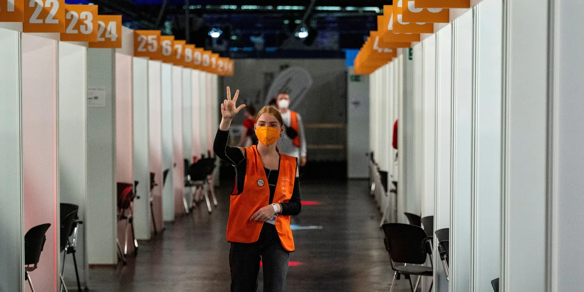 Schnelles Fiebermessen, kurze Taschenkontrolle, und ich bin drin. Ohne Schlange, ohne Termin. Am letzten Impfzentrums-Tag in der Arena Treptow ist die Stimmung entspannt. Drinnen und draußen laufen fast so viele Helfer*innen in bunten Westen herum wie Impflinge. Den Piks merke ich kaum. Eine halbe Stunde später druckt mir ein Mitarbeiter schon den QR-Code für meinen digitalen Impfnachweis aus.