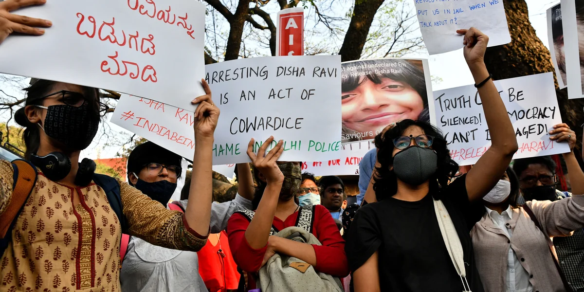 Im südindischen Bengaluru (Bangalore) haben Menschen bei einer Demonstration am Montagnachmittag gefordert: „Lasst Disha Ravi frei“. Denn die war am Wochenende in der Hauptstadt Delhi wegen Beihilfe zu einer Protestanleitung abgeführt worden.