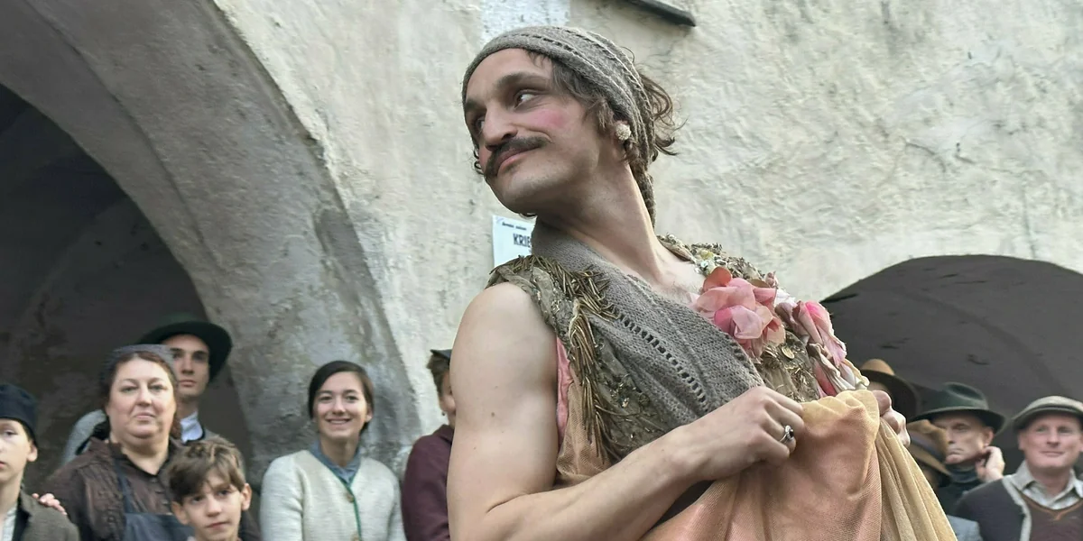 Fast hundert Minuten länger als „Daaaaaali!“ und damit von knapp drei Stunden Dauer ist Giorgio Dirittis Wettbewerbsfilm „Lubo“, der wahre Begebenheiten aus der Schweiz in einer fiktiven Form präsentiert. Franz Rogowski spielt darin Lubo Moser, einen Jenischen, die ihrer nomadischen Lebensweise wegen von den anderen Schweizer Bürgern als „Zigeuner“ diskriminiert werden. Seine Familie ernährt er als Unterhaltungskünstler, zu Beginn des Films tanzt er in einem Bärenkostüm, dem er kurz darauf geschminkt und in Frauenkleidern entsteigt.