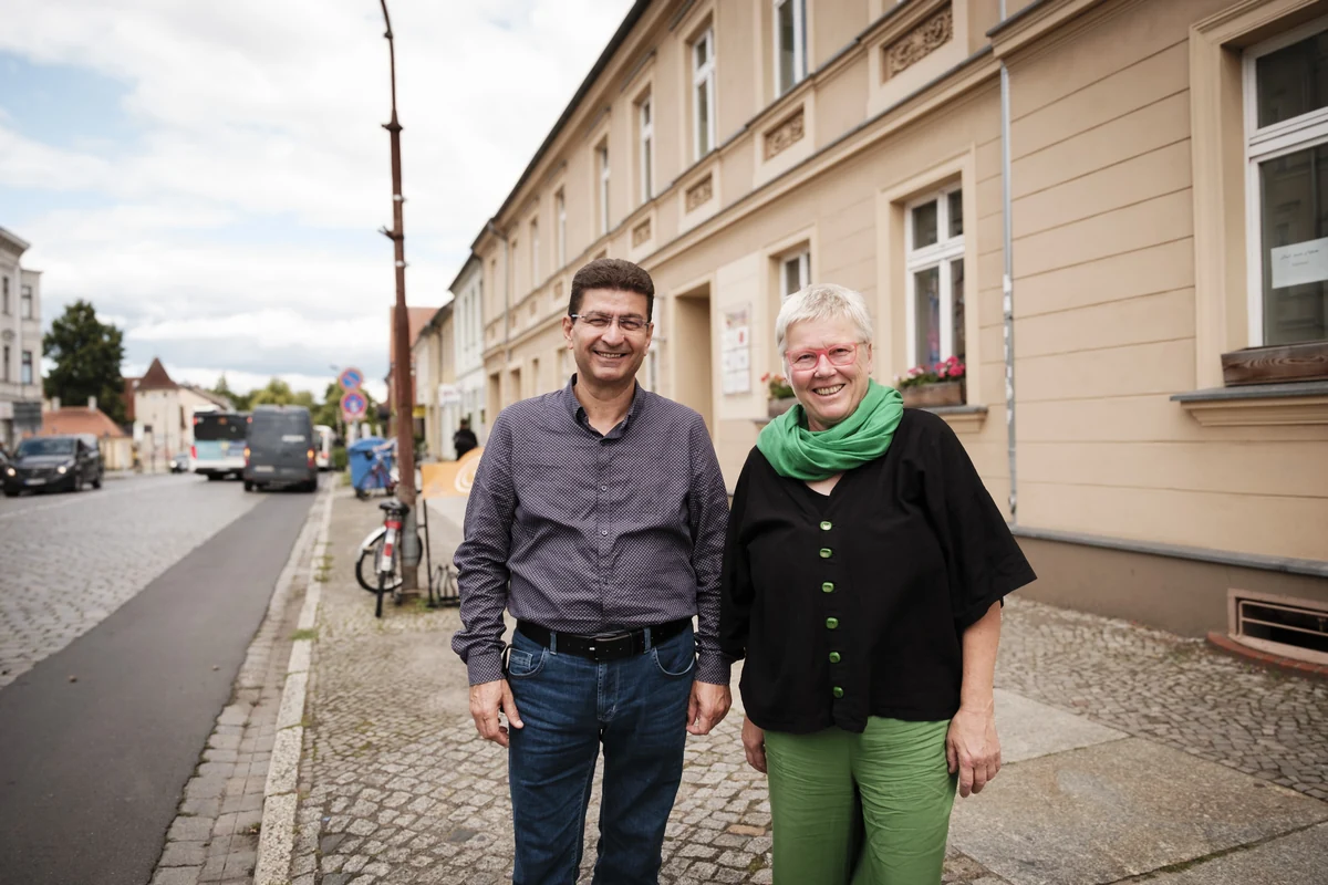 „Mir war damals wahnsinnig langweilig, deshalb packte ich mit an“, sagt er. In Hama, seinem Heimatort in Syrien, hatte er als Englischlehrer gearbeitet, das kam ihm jetzt zugute. Er half den Mitarbeiter:innen des Wohnheims mit Übersetzungen. In dieser Zeit lernte er auch Christiane Schultz kennen, Geschäftsführerin des christlichen Vereins Esta Neuruppin.
