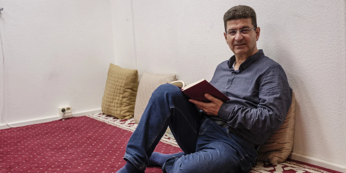 In den Gebetsraum kommen unter der Woche nur wenige Muslim:innen, freitags versammeln sich jedoch sechzig bis siebzig Menschen für das Freitagsgebet. Manche reisen hierfür bis zu einer Stunde aus dem Umland an. An großen Feiertagen wie dem Zuckerfest besuchen bis zu 150 Menschen den Verein, die Frauen beten dann in den Innenräumen, die Männer draußen. „Wir hätten gern unsere eigene Moschee mit mehr Platz, aber es ist schwierig, eine Immobilie zu finden“, sagt Azzam. Der 50-jährige trägt Jeans und Sneakers, hinter einer schmalen Brille blicken freundliche Augen hervor.