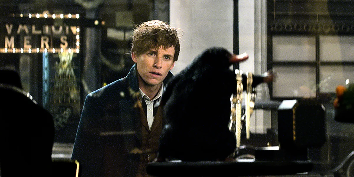 Es geht also um eine ganz andere Geschichte. Und doch erklingt schon zu Beginn des Films das alte Harry-Potter-Sound-Theme. Auch sieht alles aus wie in den früheren Filmen, weil sich die Zauberwelt bis in die nuller Jahre keinen modischen und technischen Trends beugte. Fans sehen, was sie erwarten: mies gelaunte Hauselfen, durch die Luft schwebende Teller, jemand ruft „Accio Zauberstab“. Hinzu kommt der so verschroben britisch nuschelnde Newt, gespielt von Eddie Redmayne, der einem gleich sympathisch ist. Man fühlt sich kurz wieder wie mit dreizehn.