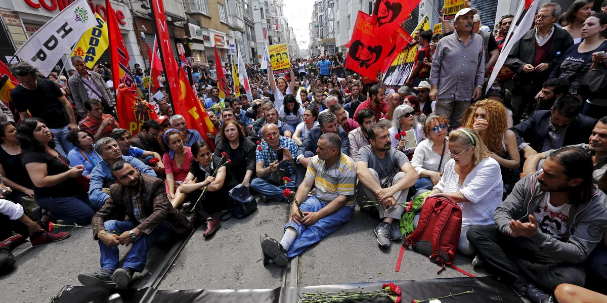 Die Aktivisten hielten rote Nelken und skandierten Slogans wie „Überall ist Taksim, überall ist Widerstand“. Die Kundgebung endete friedlich. Die „Taksim-Solidarität“, eine regierungskritische Dachorganisation, hatte zu der Demonstration aufgerufen. Im Bezirk Besiktas feierten die Menschen in einem Stadtteilpark den Jahrestag.