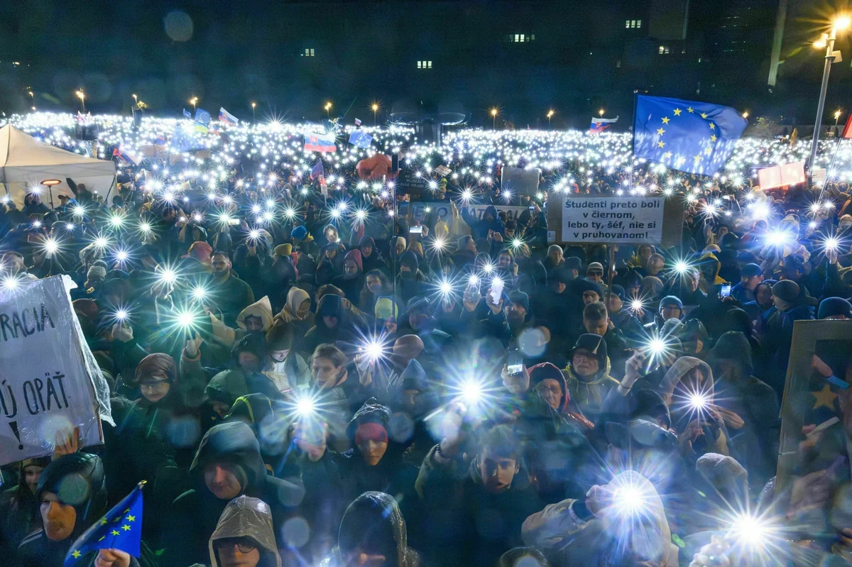 In der Slowakei demonstrierten zehntausende Menschen gegen die Regierung des linksnationalen Ministerpräsidenten Robert Fico. Aufgerufen hatten dazu mehrere Oppositionsparteien und Nichtregierungsorganisationen wie die Initiative „Mier Ukrajine“ (Friede der Ukraine).