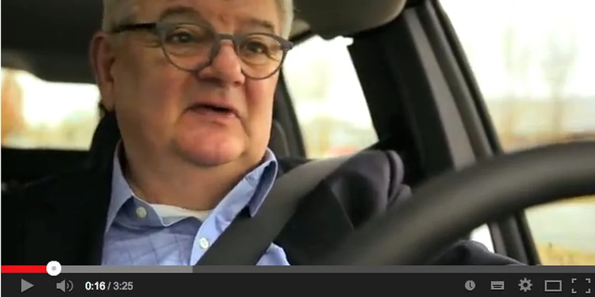 Diesmal sitzt er in einem Auto. Es macht klingelingeling, es macht düdelü und dann wird die Reibeisenstimme des einstigen Grünen-Idols eingeblendet. Es ist ein „wunderschönes Fahrgefühl“, sagt Joschka Fischer. „Isch bin beeindruckt.“