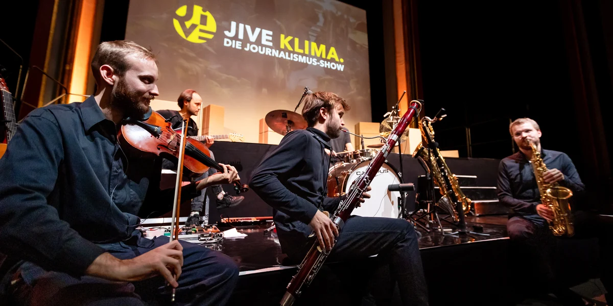 Was brauchen Geschichten, damit sie bei den Leuten ankommen? Ein Orchester und eine große Bühne, dachten sich die Organisator*innen von “Jive Klima“. Das ist eine Veranstaltung des Recherchezentrums Correctiv und Headliner, einer gemeinnützigen Organisation, die Journalismus und Kultur zusammenbringen möchte. Am Dienstagabend fand Jive das erste Mal im Babylon Kino in Berlin statt. Neun Journalist*innen, die konstruktiven, also lösungsorientierten Klima-Journalismus machen, erzählten ihre Geschichte. Beim Jive – einer Verbindung aus den Worten Journalismus und Live – sollen die Journalist*innen auf der Bühne konstruktiven Journalismus einem Laien-Publikum vorzeigen. An den beschwingten Paartanz sollte man dabei aber auch denken.
