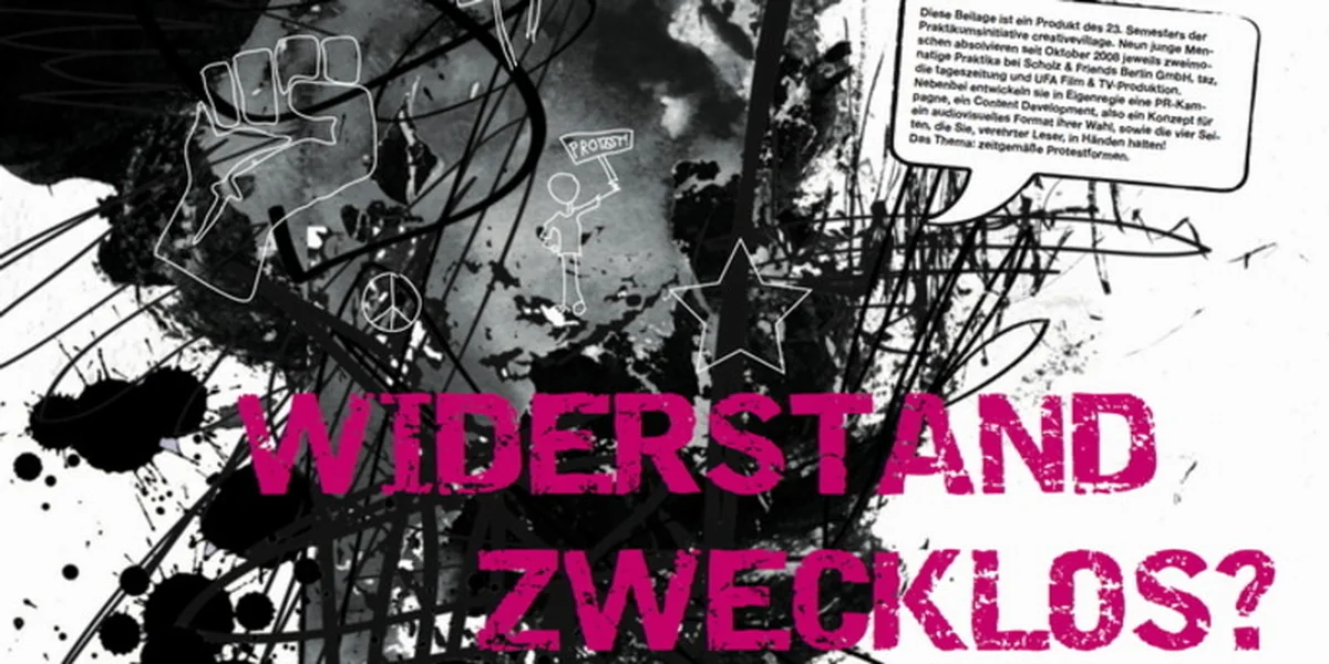 Dieser Text ist Teil einer Taz-Beilage der Praktikumsinitiative creative village. Das Thema in diesem Jahr: zeitgemäße Protestformen. Die komplette Beilage gibt es hier als pdf.