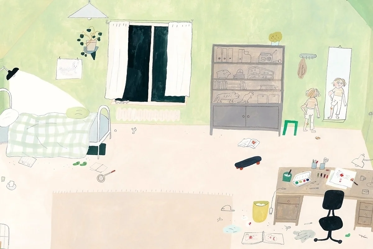 Wunderbar gelingt es Emma AdBåge diese Schwarmbewegungen festzuhalten. Ihre schlaksigen Figuren zeichnet die Illustratorin mit feinen Linien in gedeckten Farben, umso deutlicher leuchtet auf den Bildseiten das Blut. Der Unfall wird zum faszinierenden Ereignis, nicht nur für den verletzten Jungen. „In Mathe rechneten wir aus, wie viele Wunden wir schon hatten, und im Kunstunterricht gingen uns die roten Filzstifte aus.“