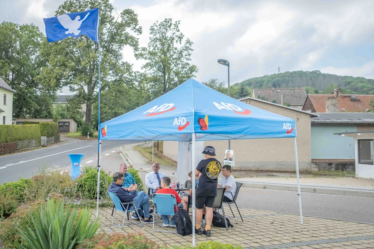 Johannes ist zugezogen, arbeitet als Sanitäter. „Es wird ja auch erzählt, dass die Löhne dann besser werden, wenn die AfD regiert“, sagt er, und findet es gut: „Am Ende des Monats ist nicht mehr viel übrig, gerade mit einer Familie.“ Seine Freundin schuckelt die gemeinsame Tochter in der Trage unter der Winterjacke, drei Monate ist sie jetzt alt.