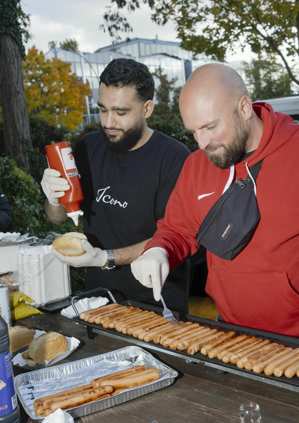 In den Container zieht eine Rauchwolke von der Grillstation am Eingang des Geländes. Dort brutzeln auf einem Tischgrill Würstchen, daneben ist ein Hot-Dog-Buffet mit Brötchen, Wurst, Röstzwiebeln, Ketchup, Senf. Grillmeister sind ein Mann und ein kleiner Junge in Gucci-Pullover. Kids in Fußballtrikots, Monclerjacken und Gucci-Caps holen sich Hot-Dogs ab, aus dem Lautsprecher dröhnen Eminem und Drake, auf der Tischtennisplatte nebenan wird geknutscht. Mittendrin: die Feuerwehrmänner.