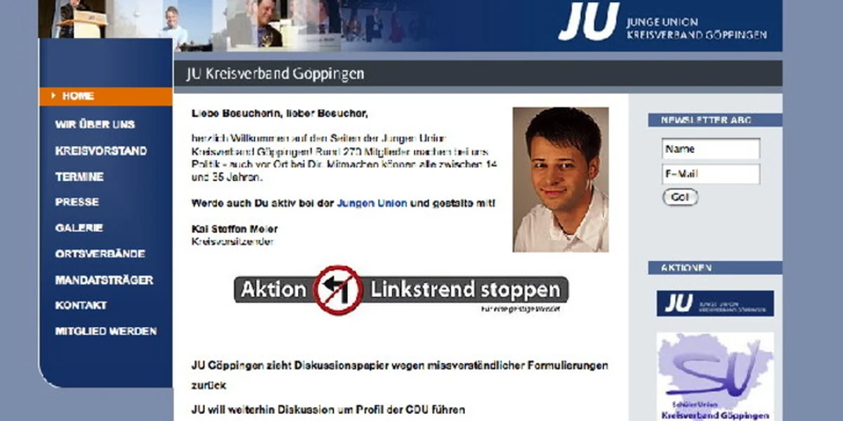 Trotz Rückzieher: Den Linkstrend will die JU Göppingen weiter stoppen. Bild: screenshot www.ju-gp.de/