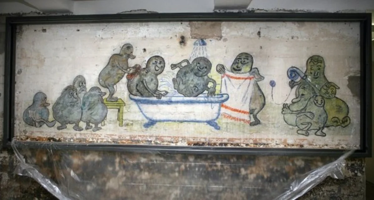 Original-Malereien von Häftlingen sind im Keller an den Wänden der ehemaligen Häftlingsküche der KZ-Gedenkstätte Sachsenhausen noch heute zu erkennen Bild: DPA