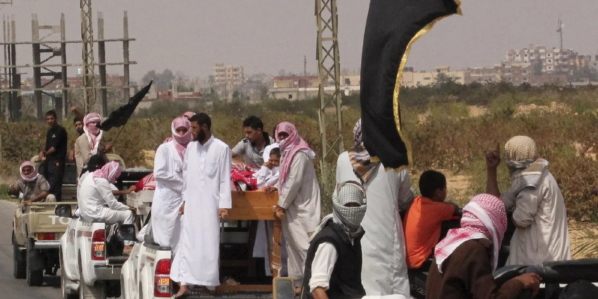 Das ägyptsche und das israelische Militär kämpfen gegen mutmaßliche Islamisten. Bei der Beerdigung von Opfern eines Luftangriffs wehte die Al-Qaida-Flagge.