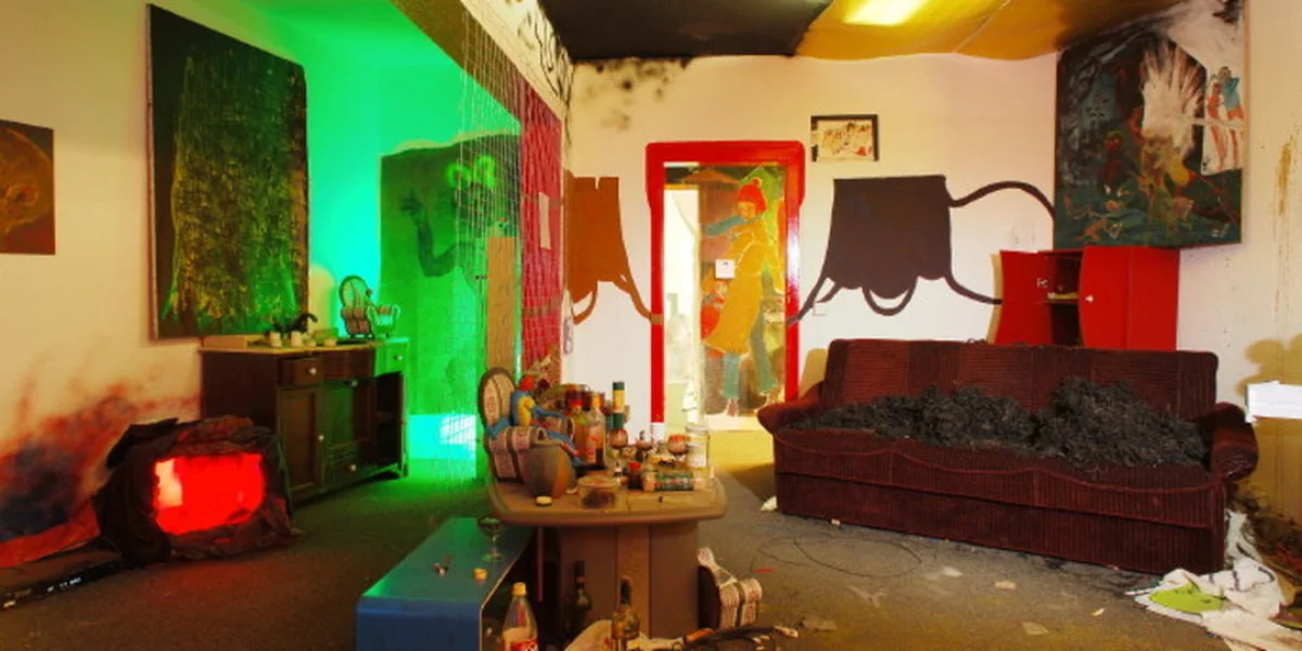 In der Tanzaufführung "I will be last", die am Eröffnungstag im angrenzenden Raum stattfand und an der auch Meinolf teilnahm, arbeitete Althoff mit einer Gruppe von Laientänzern, wobei seine eigene Rolle zwischen dem Fremden als Eindringling und einer Art Master of Ceremony changierte. In dem episodenhaften Spiel ging es offensichtlich, weniger idyllisch, um Dominanzverhältnisse, ausgedrückt durch den Kampf um eine Frau. Improvisierter Ausdruckstanz mischte sich mit formalisierten theatralischen Gesten und kunstvoll gestalteten Requisiten. Das Thema regressiver Gruppendynamik erschien, wie oft bei Althoff, im ästhetischen Verfahren transzendiert. In einem weiteren Trakt stößt man auf einen von Jeff Wall ausgewählten Querschnitt durch das malerische Werk des Künstlers. Alles in allem ein gelungenes Szenario für die neue Produktion, der der Eingangsraum vorbehalten ist.